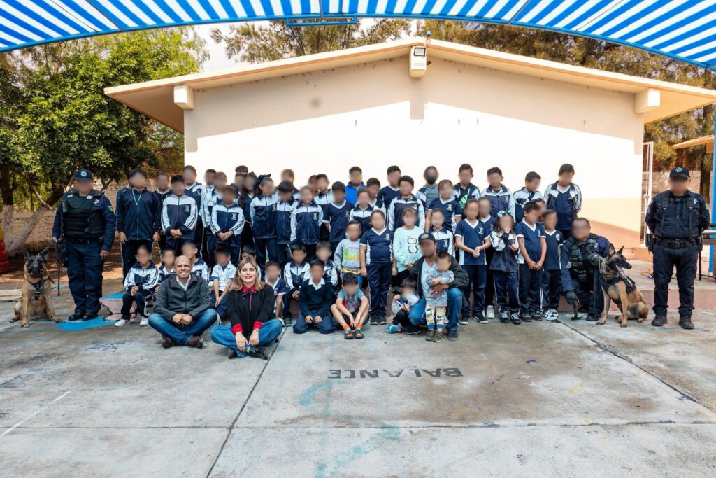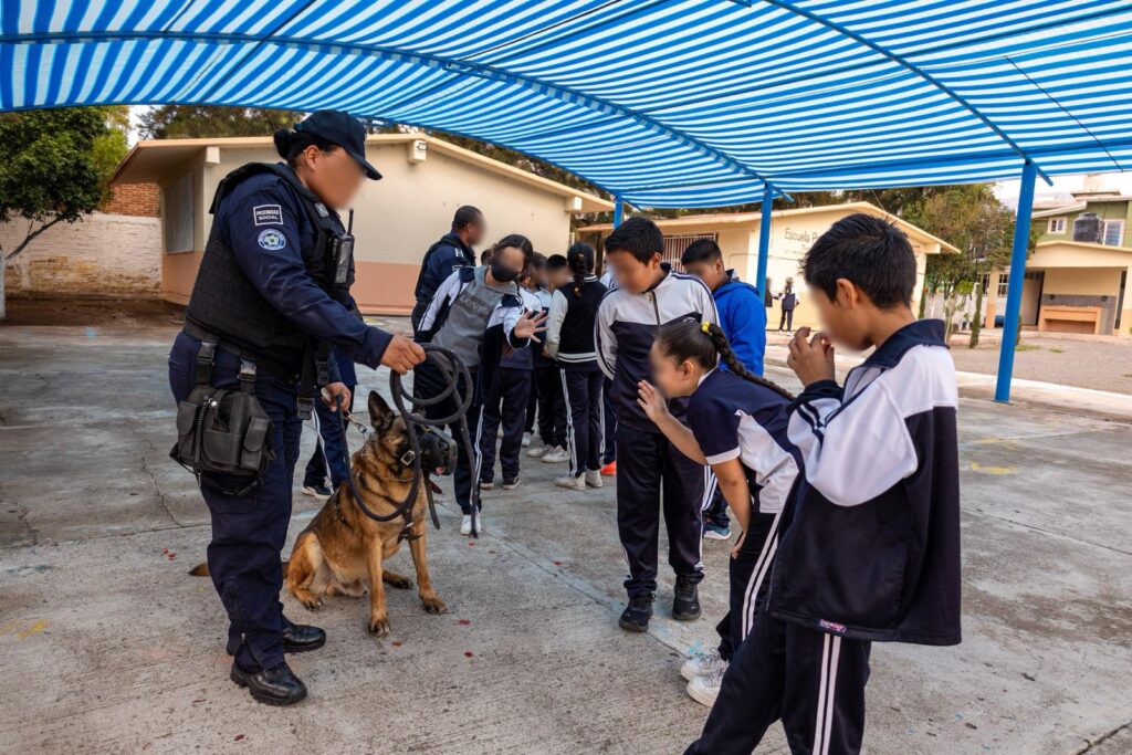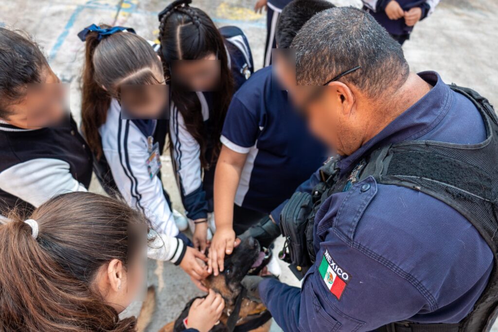Desde temprano, en la escuela Margarito Rodríguez, las y los elementos policiales arribaron con Hunter, especialista en detección de narcóticos; Turco y Duncan, ejemplos de guardia y protección, así como Lock, entrenado en obediencia avanzada y narcóticos.