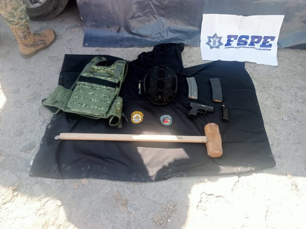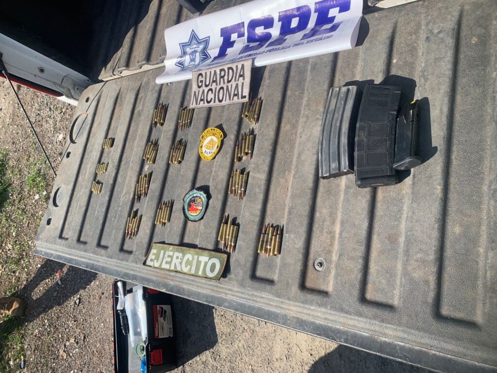 En el lugar, personal de la Guardia Nacional también localizó y aseguró un arma corta calibre 9 mm, un chaleco balístico, dos placas balísticas sin número de serie, un cargador calibre 9 mm con 13 cartuchos útiles, así como dos cargadores calibre 5.56 mm con un total de 60 cartuchos útiles.