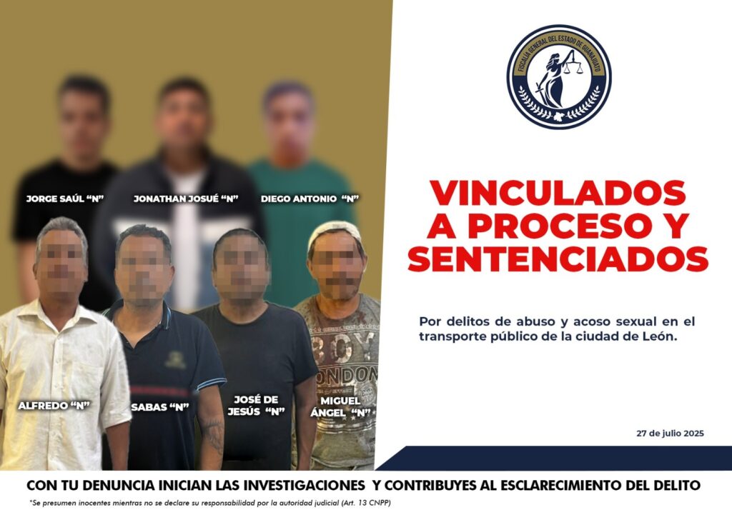 De inicios de 2025 a la fecha, la Fiscalía Especializada en Investigación de Delitos cometidos en contra de Mujeres por Razones de Género de la Fiscalía Regional “A” ha iniciado carpetas de investigación por delitos de abuso y acoso sexual en el transporte público de la ciudad de León. Las víctimas han denunciado lo que vivieron, contando con el respaldo de sus familias y es así que se ha dado inicio a las investigaciones.