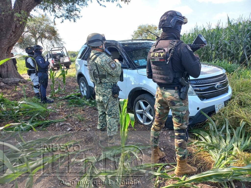 Más tarde, en un camino que conecta la comunidad de Cahuageo, en Valle de Santiago, con La Angostura, Yuriria, las autoridades aseguraron una camioneta Ford Escape. El vehículo presentaba indicios de posible participación en hechos delictivos y también fue puesto a disposición de las autoridades competentes para las investigaciones correspondientes.