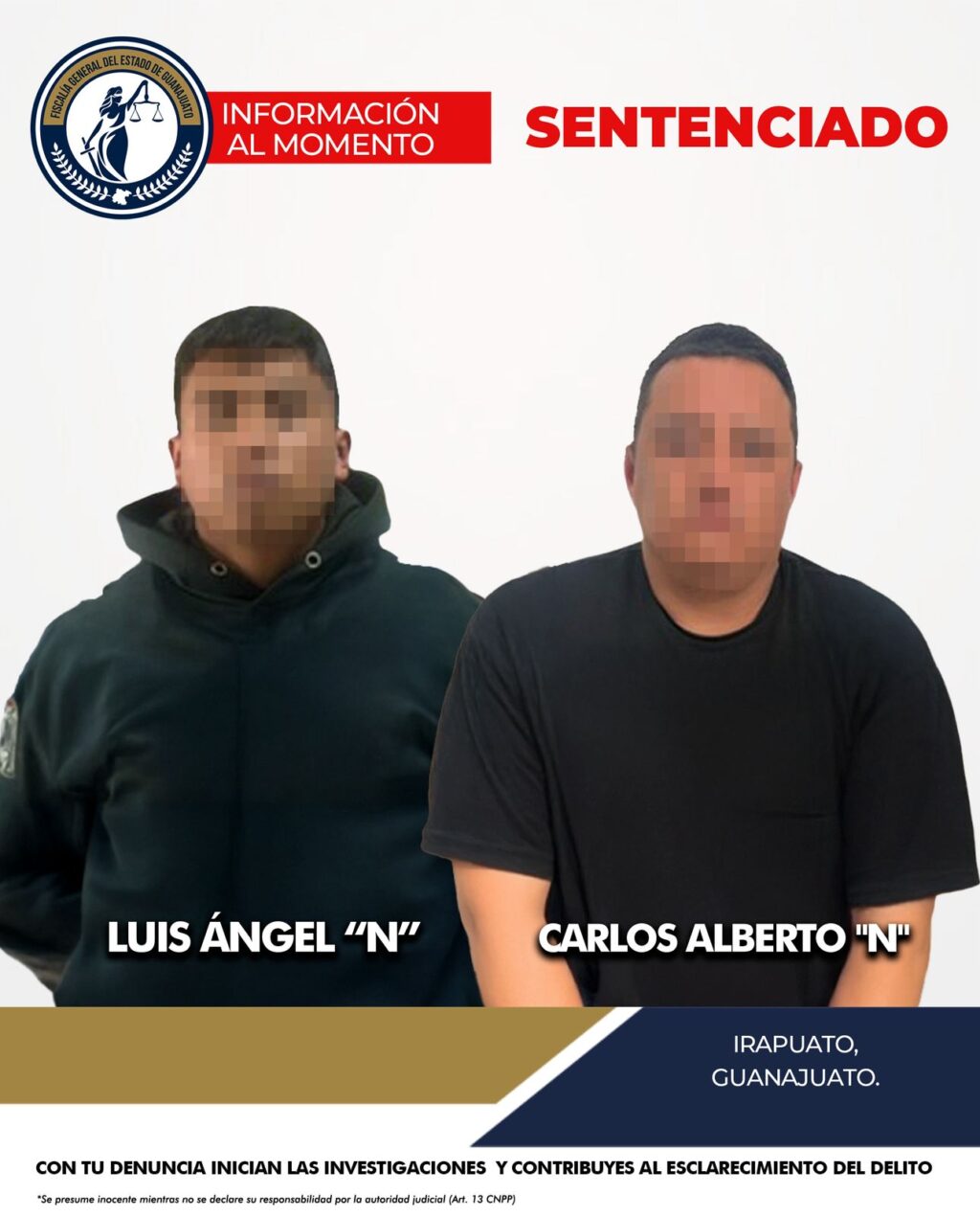 En su calidad de acusados, se encontraban LUIS ÁNGEL “N” y CARLOS ALBERTO “N”, señalados como responsables de la privación de la libertad de una persona de 51 años que fue sustraída violentamente de su domicilio en la comunidad de Cuarta Brigada, en Irapuato, durante la madrugada del 29 de febrero de 2024.