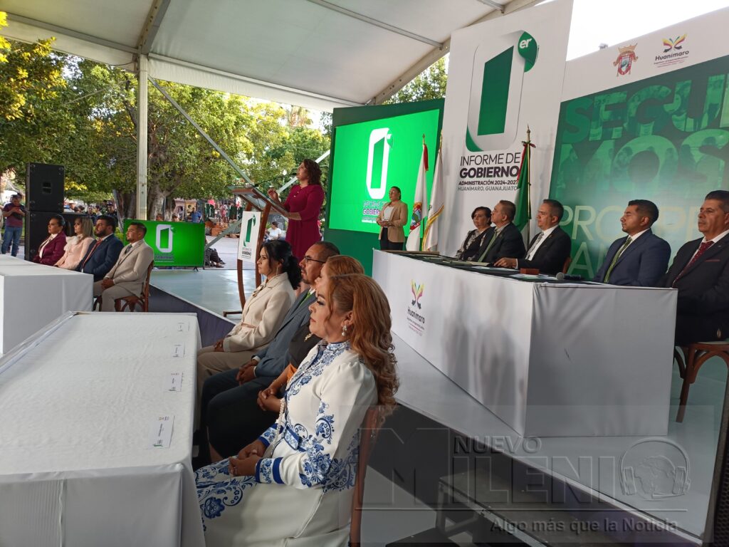 Huanímaro, Gto. — El pasado sábado 20 de septiembre, la plaza principal fue escenario del primer informe de gobierno de Laura Villalpando en su segundo periodo como presidenta municipal. Sin embargo, más que un ejercicio de rendición de cuentas, el evento pareció un homenaje familiar.