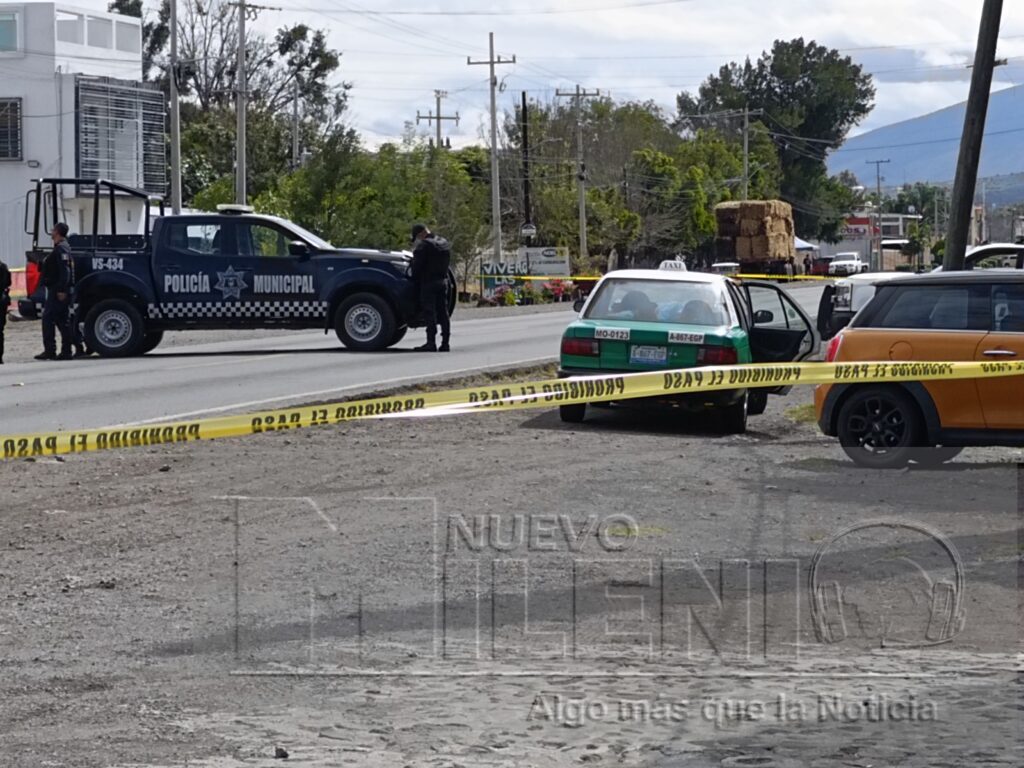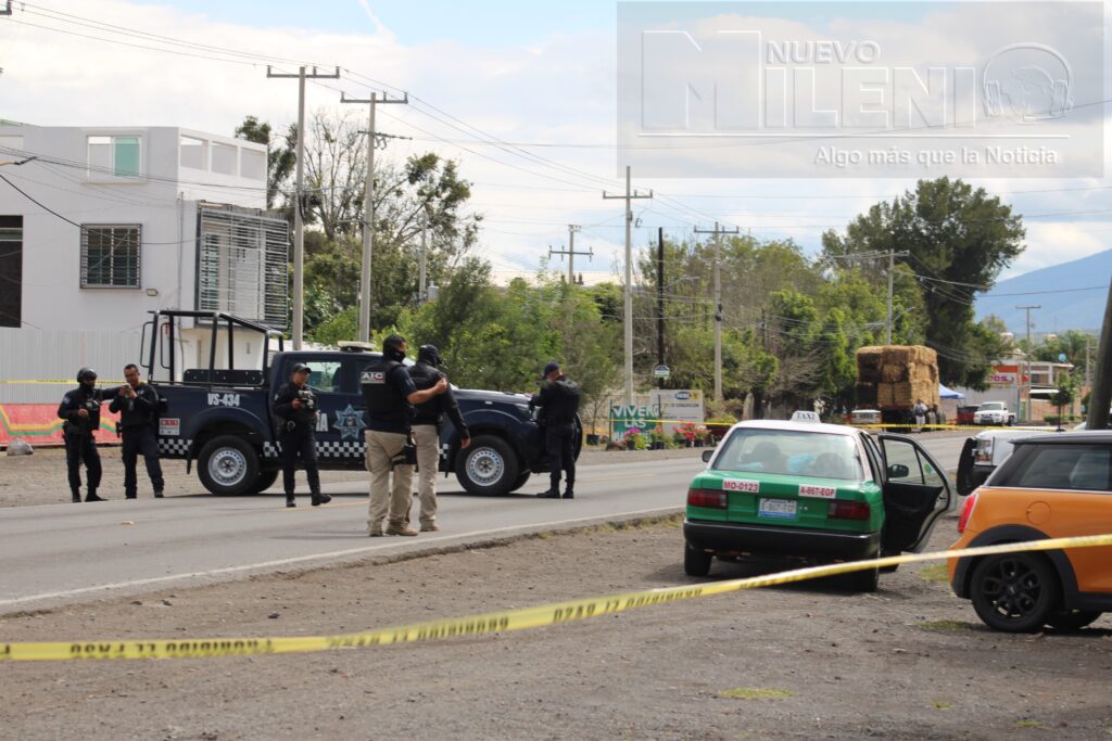 Al llegar al lugar, los oficiales localizaron un taxi de Moroleón con placas A-867-EGP y número económico 0123, el cual presentaba múltiples impactos de bala en el costado izquierdo trasero. En el interior del vehículo se encontraba un hombre con lesiones visibles provocadas por proyectil de arma de fuego. Se informó que viajaba como pasajero, aunque no se precisó su destino ni lugar de origen.