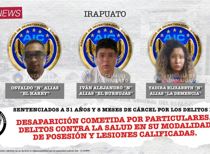 Irapuato, Gto., 10 de octubre de 2023.- La Fiscalía de Guanajuato logró que los integrantes de una...