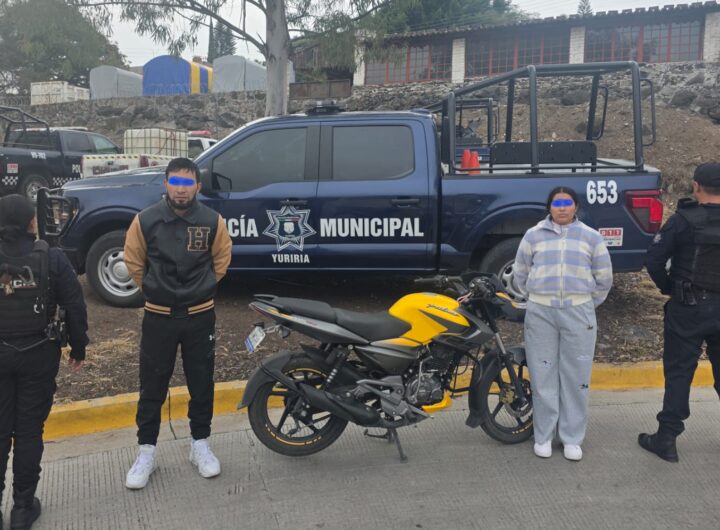 YURIRIA, GTO.- Dos personas arrestadas y una moto con reporte de robo en Valle de Santiago fueron...